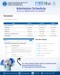 Explore the programs, activities, and opportunities designed to shape your global academic journey. Don’t miss the chance to be part of the IUP Chemical Engineering at ITB.