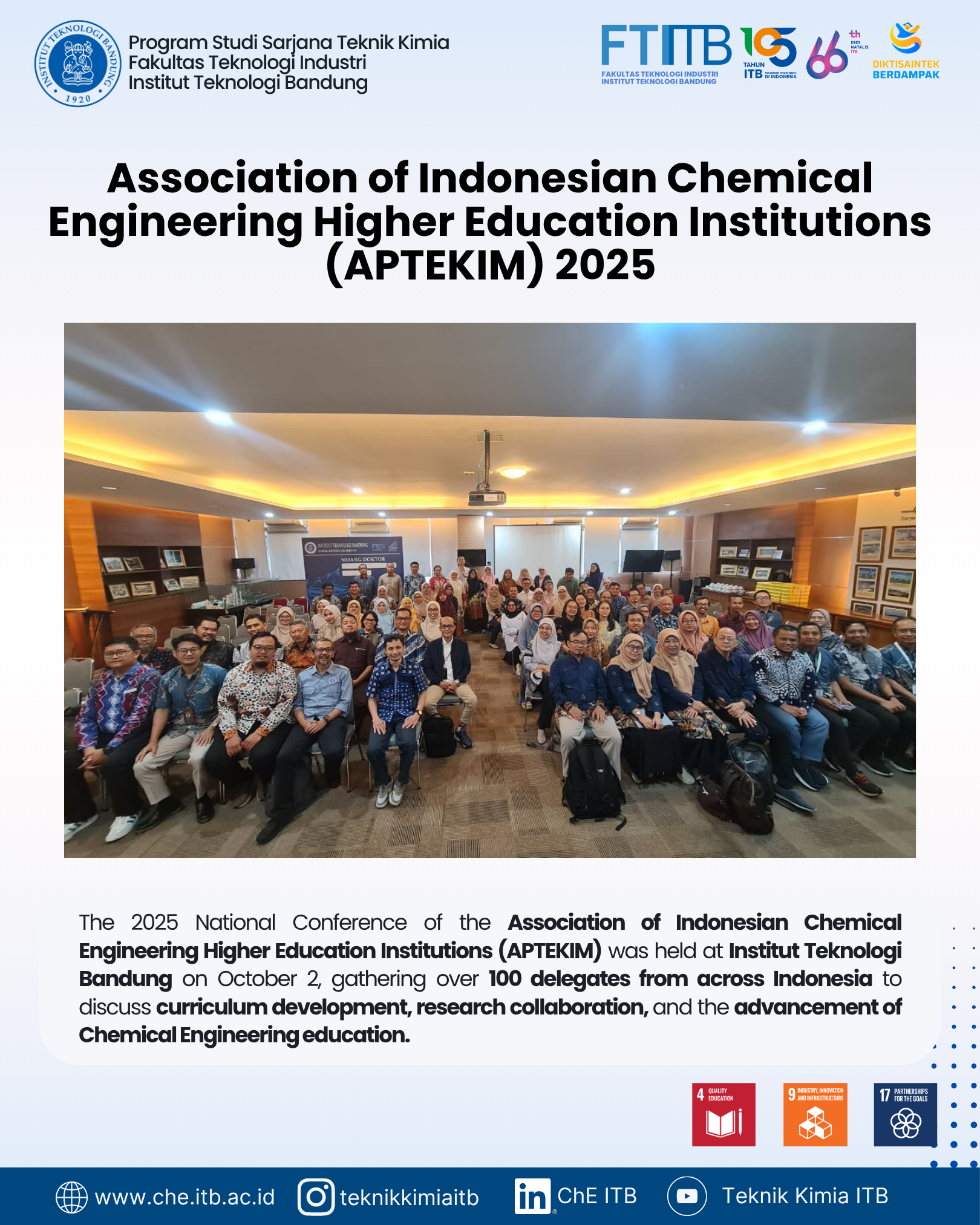 On October 2, 2025, ITB had the honor of hosting the 2025 National Conference of APTEKIM (Association of Indonesian Chemical Engineering Higher Education Institutions), attended by delegates from across Indonesia.