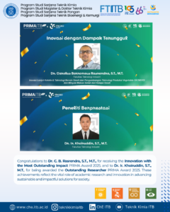 Congratulations and Success, CHEMICAL REACTION ENGINEERING AND CATALYSIS LAB. FTI, ITB for the award in the ADHICIPTA ENGINEERING PII AWARD 2024 category. 6 December, 2024 No comment