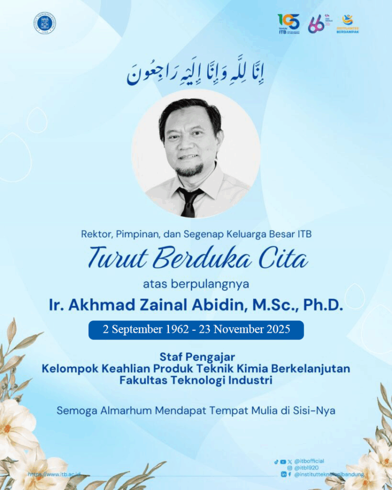 Obituari Untuk Sahabat Ir. Akhmad Zainal Abidin, M.Sc., Ph.D. oleh Prof. Yazid Bindar. November 24, 2025 Tidak ada komentar